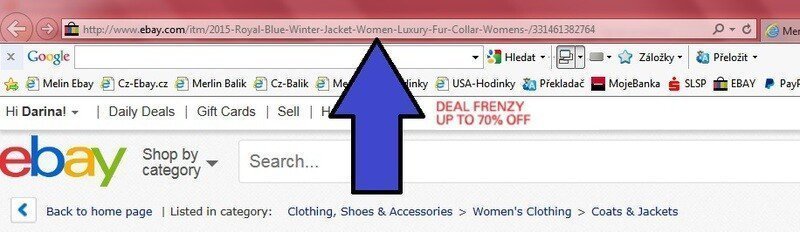 Z vášho účtu zvoľte možnosť "Asistovaný nákup / eBAY a následne vložte celý URL odkaz na vami vybraný tovar z eBAY (pozri modrá šípka nižšie)